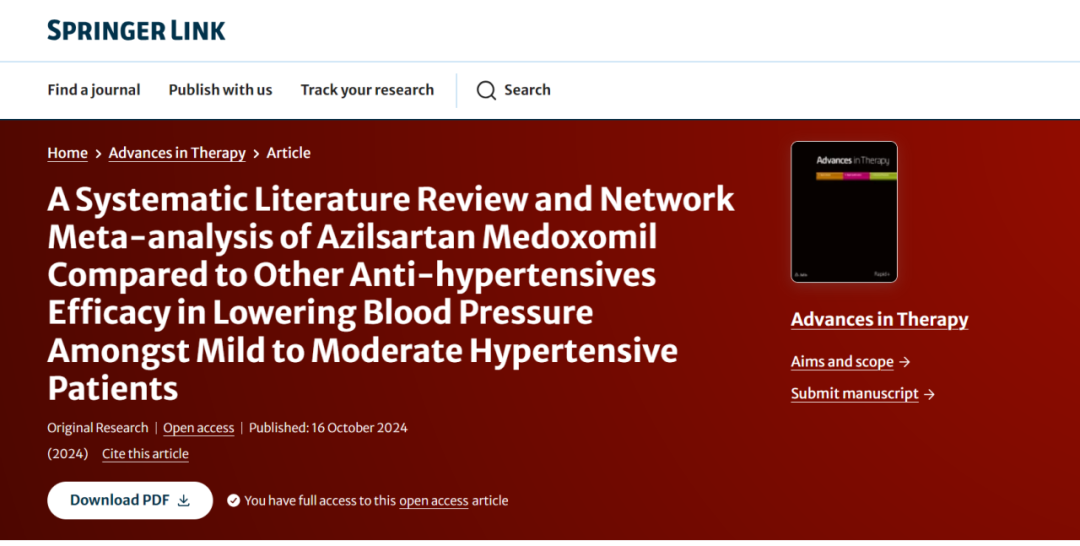 2024年10月16日,bsports生物医药有限公司宣布旗下重磅降压药物美阿沙坦钾(商品名:易达比®)一项最新的网状荟萃分析研究于国际知名期刊Advances in Therapy发表。该网状荟萃分析研究结果显示,在轻至中度高血压患者中,与其他常用一线降压药物(ARB、ACEI、ARNI、β-受体阻滞剂、钙通道阻滞剂)相比,美阿沙坦钾(40mg和80mg)显示出良好的降压疗效,尤其是80mg剂量在降低诊室收缩压和舒张压方面最为有效。此次研究结果的发表,表明了国际同行评审对于对该分析研究质量与数据的认可。